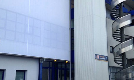La tribune SINGHER plus ancienne comprenait déjà un ascenseur, mais certains gradins n’étaient pas desservis. L’installation d’un élévateur vitré permet de les relier désormais au salon situé à moins de 2m en contrebas.
