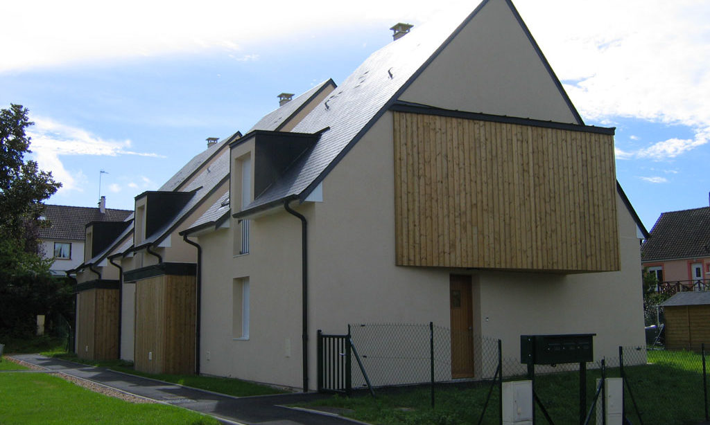 Les 3 logements comprennent deux T5 duplex, adaptés en RDC pour les personnes handicapées, et un T4 duplex en limite de rue. Si l’unité de l’opération est affirmée par l’utilisation de matériaux et d’ouvertures identiques, l’indépendance de chaque logement est soulignée par le rythme des toitures et des accès propres à chaque jardin.